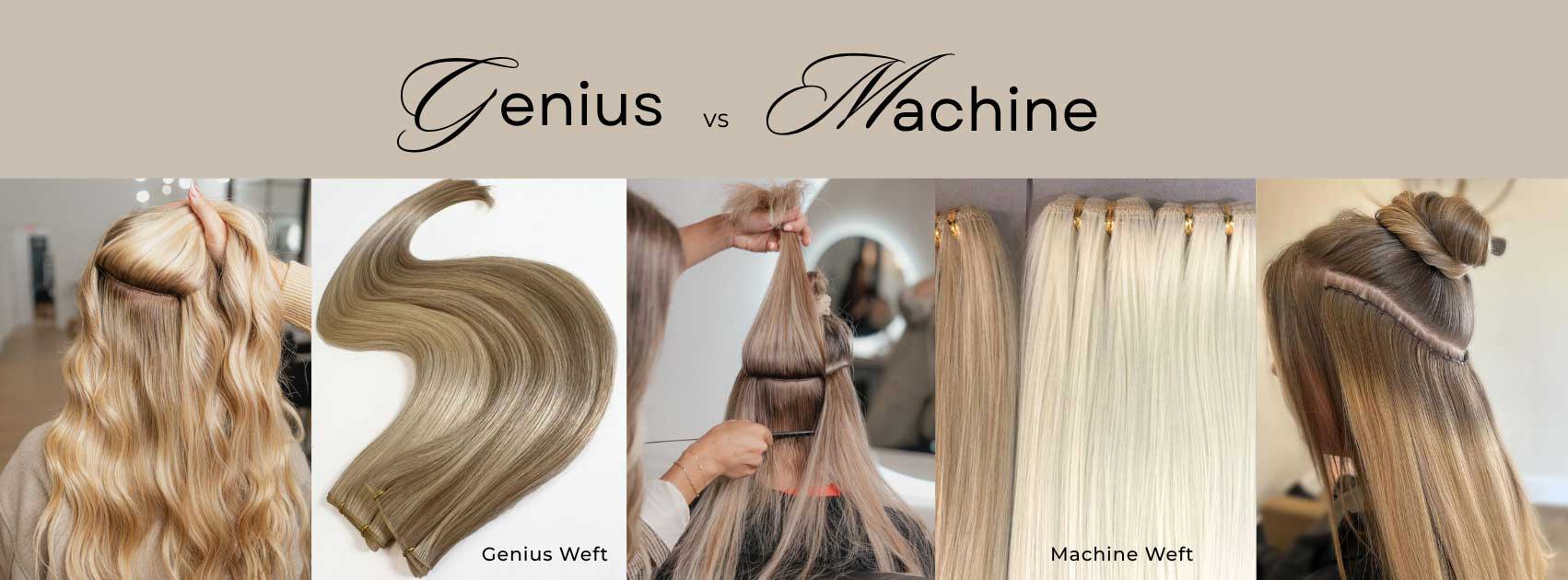 Choose from our two professional installation weft systems: Genius Wefts (ultra-flat, low-profile wefts that lay discreetly and comfortably) and Machine-Tied Wefts (densely sewn for maximum fullness and durability).